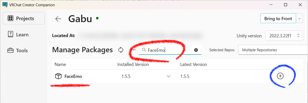 ①FaceEmoをVCCからインストールしてください。