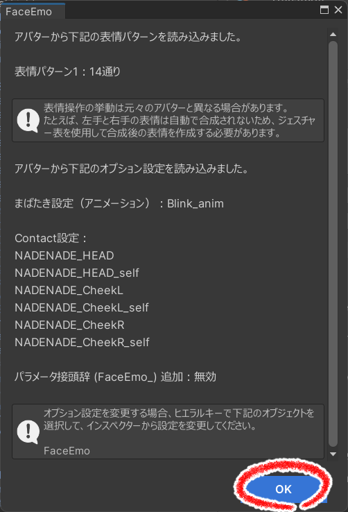⑨適用されたら「FaceEmoPrefab」が追加されます。