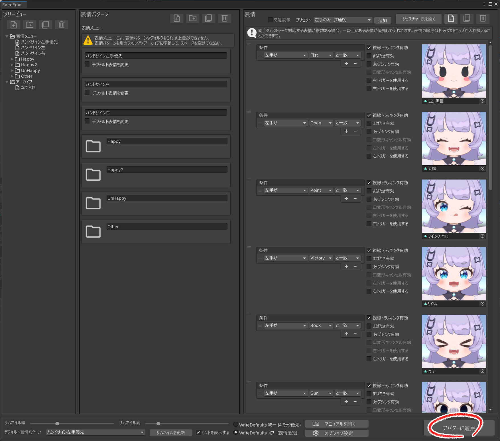 ⑧読み込めたら「アバターに適用」を押してください。押さないと適用されません。